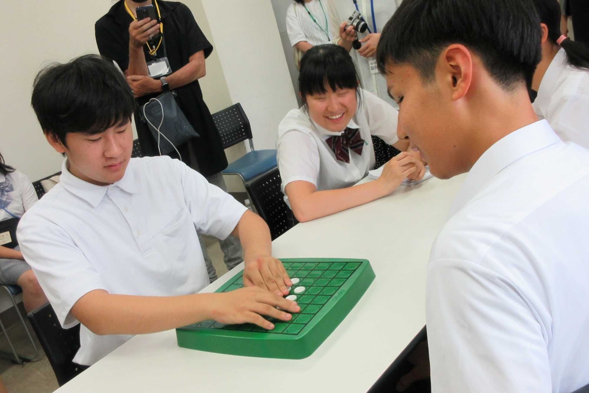 生徒の皆さんは、先生への自己紹介の後、先生から点字・写真入り名刺をいただき、楽しい雰囲気で活動をスタートできました。先生からは、来日されてから行った仕事や活動内容について話を聞きました。