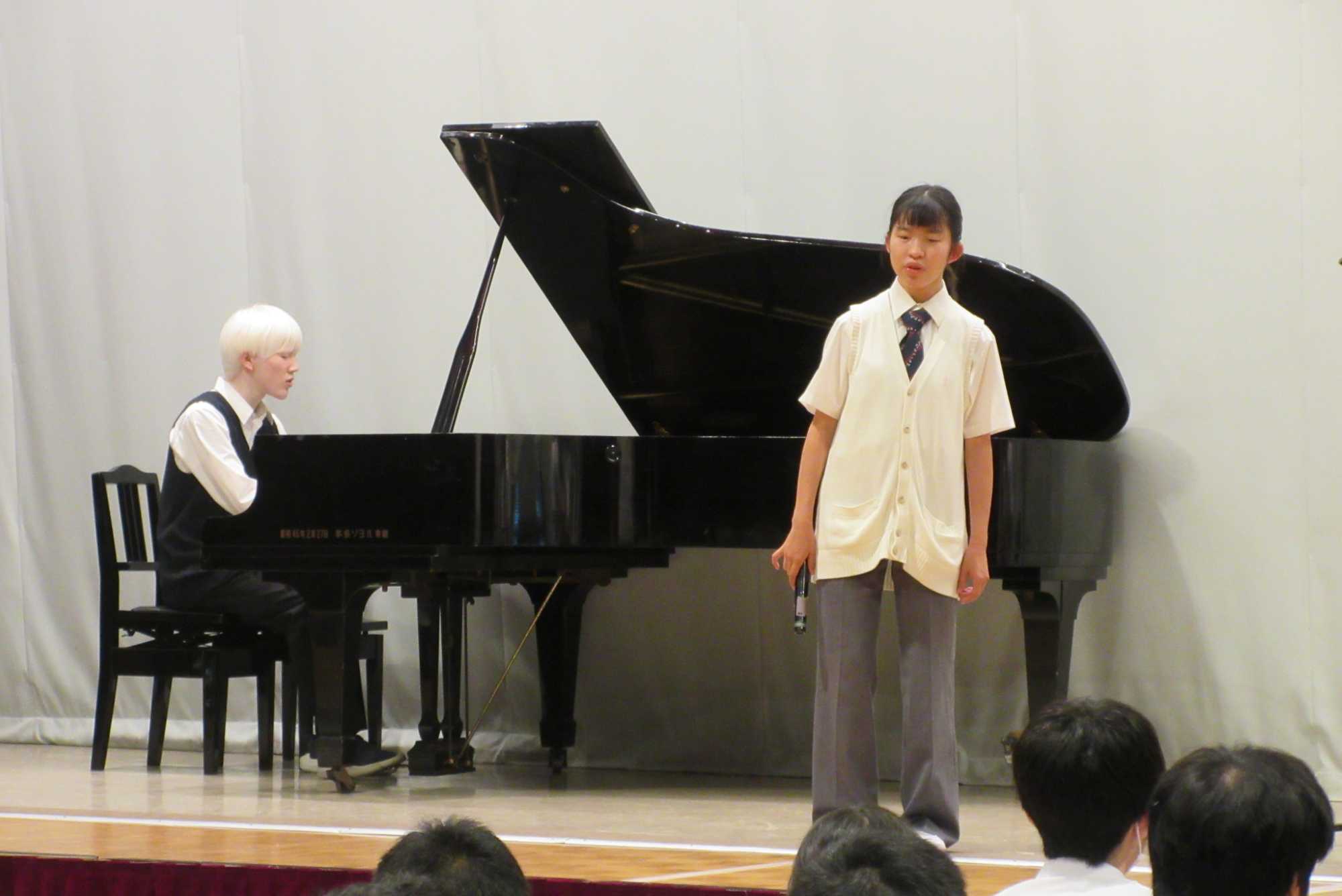 午後は、第1回高等部オセロ大会決勝戦と、有志団体による発表が行われました。オセロの決勝は、予選を勝ち抜いた2名による熱戦となり、会場中がその展開に注目しました。有志発表では、音楽史の授業を再現し、各時代の音楽を歌唱・演奏した音楽科の発表、ポップスの歌唱、昔話を題材にした劇など、バラエティ豊かなステージで観客を魅了しました。