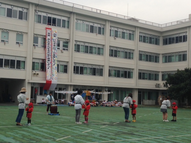 今年も10月の第2土曜日に幼稚部・小学部の運動会を実施しました。赤組は「みんなで力を合わせて 優勝しよう!」、白組は「いなづまパワーで 優勝しよう!」のスローガンの下、力いっぱい頑張りました。